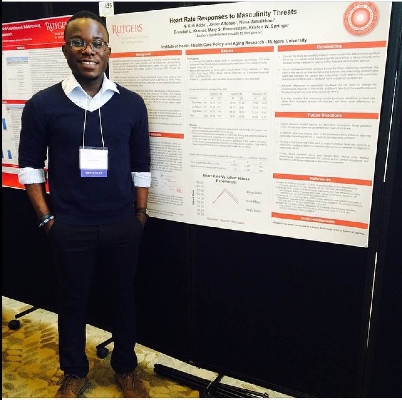 Kofi plans to apply to graduate schools in the fall, working toward his MPH and eventually a PhD. Initially unsure of the path he wanted to take in public health, guidance from faculty members Dr. Mark Robson (Issues in Environmental Health) and Dr. Alexandra Lopez (Drugs, Culture, and Society) helped shape his direction. “I finally settled on Behavioral Science and Health Education because I am interested in how society and human behavior shapes outcomes. My minor is in health and society so it is a good fit. It will also help me hone my knowledge about the role the above mentioned factors play in health disparities.”
