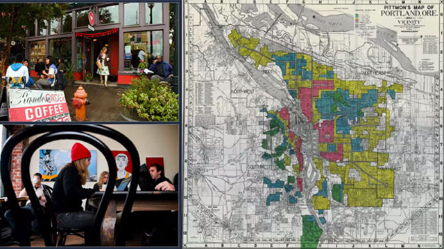 Dr. Bates gave a brief history of planning and community development in Portland, Oregon, noting that Portland, like many cities, had been white and the demographics changed during World War II as blacks came from the south to work in the Kaiser shipyards. This change alarmed white Oregonians. At the time, Oregon was a “sun-down state,” meaning Blacks could not be out after sundown. In addition, Blacks could not stay in the state for more than four days, and Ku Klux Klan activity was high. When Blacks moved into Portland, they were steered into the Albina district, a red-lined community targeted for “urban renewal.”